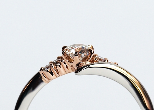 ダイヤモンドを留めている石座に配したピンクゴールド。