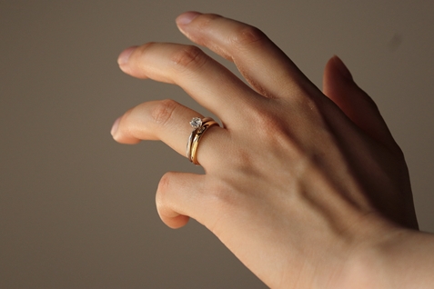 婚約指輪と結婚指輪の重ね付け。