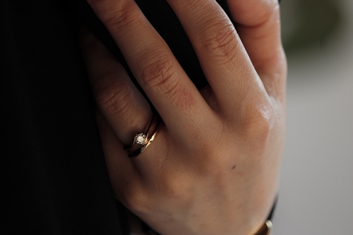 婚約指輪の重ね付け。